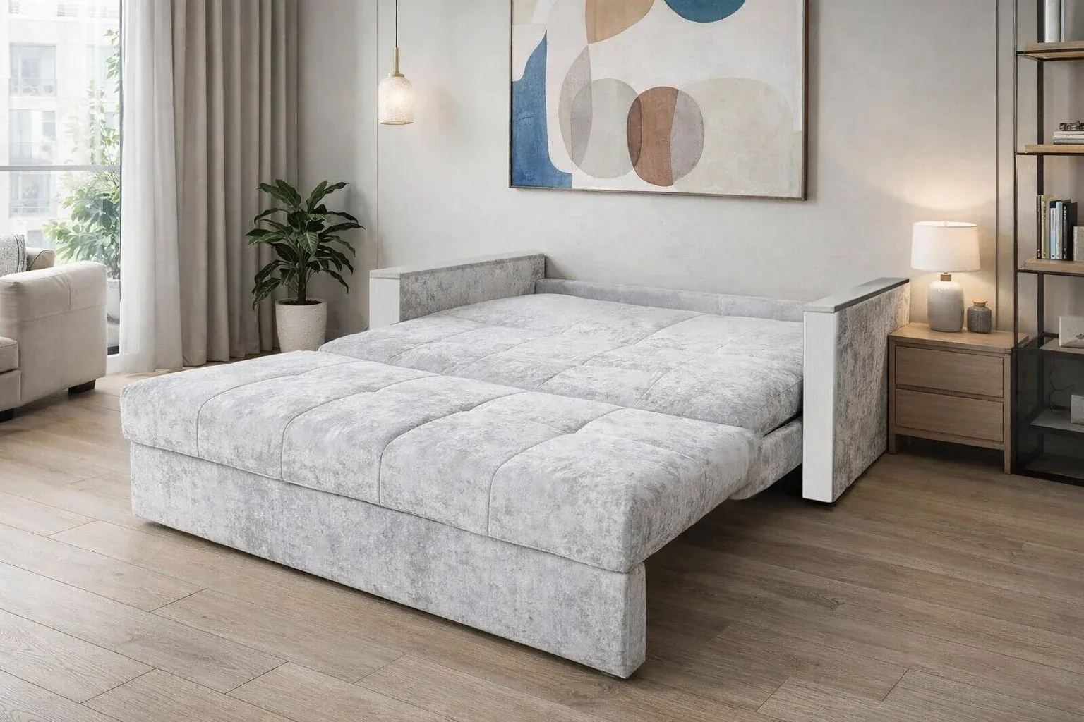 Диван-кровать "Портленд-1" с вместительным бельевым ящиком будет хорошим решением для гостиной или спальной комнаты. Независимый пружинный блок в основании дивана обеспечит его ежедневное использование в качестве комфортного спального места размером 145х202 см.