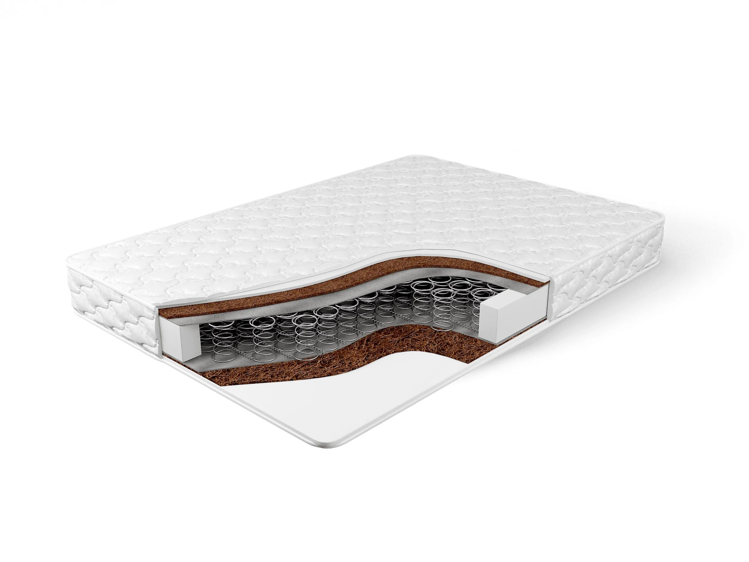 Чехол выполнен из хлопкового жаккарда, простеганного на холконе. Наполнители в сочетании с пружинным блоком создают упругость, которая обеспечивает равномерную нагрузку и комфортный сон.