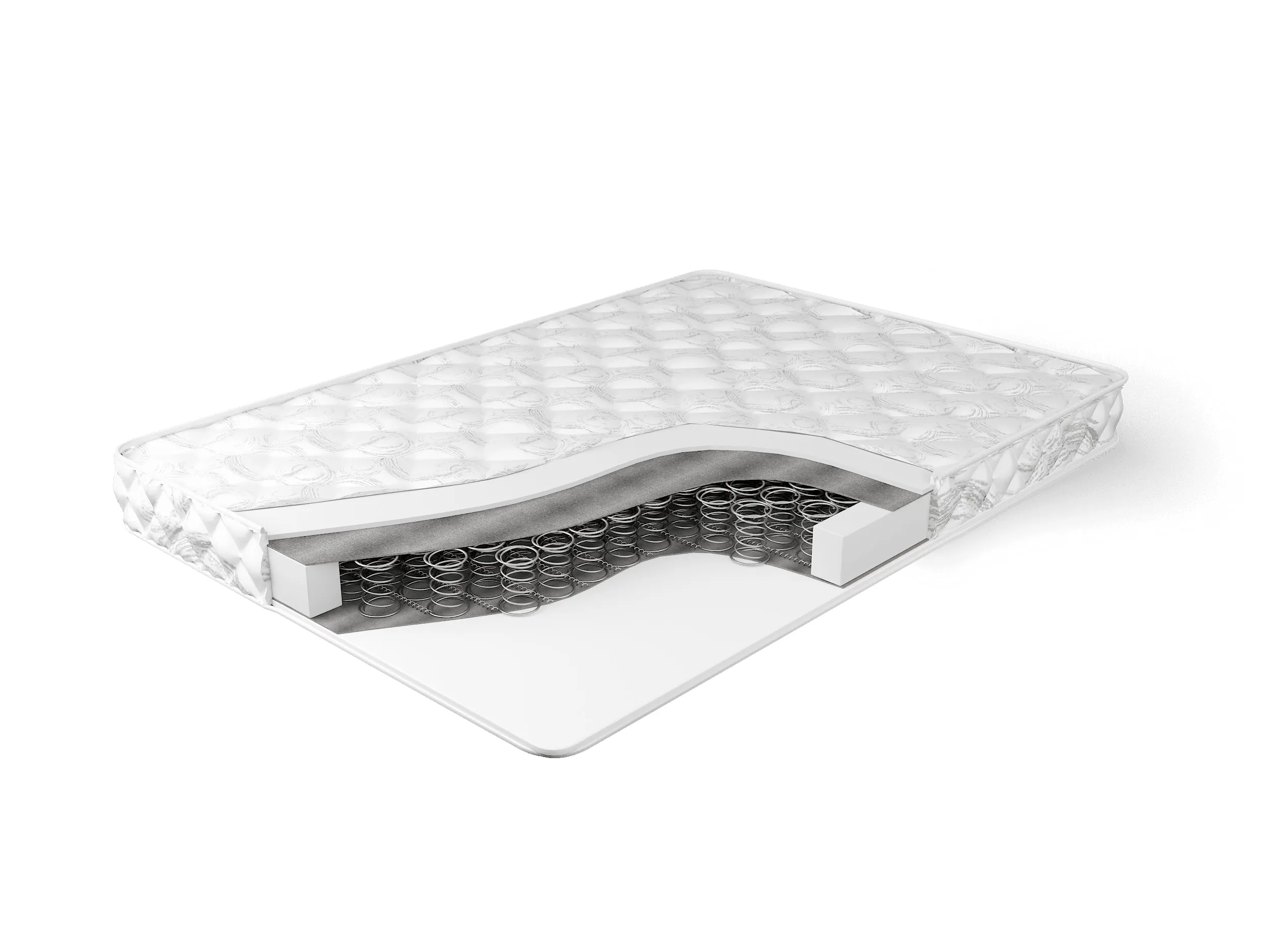 Слой ортопены надежно защищен от истирания слоем термовойлока, находящемся между ним и пружинным блоком, тем самым значительно продлевается срок службы матраса.