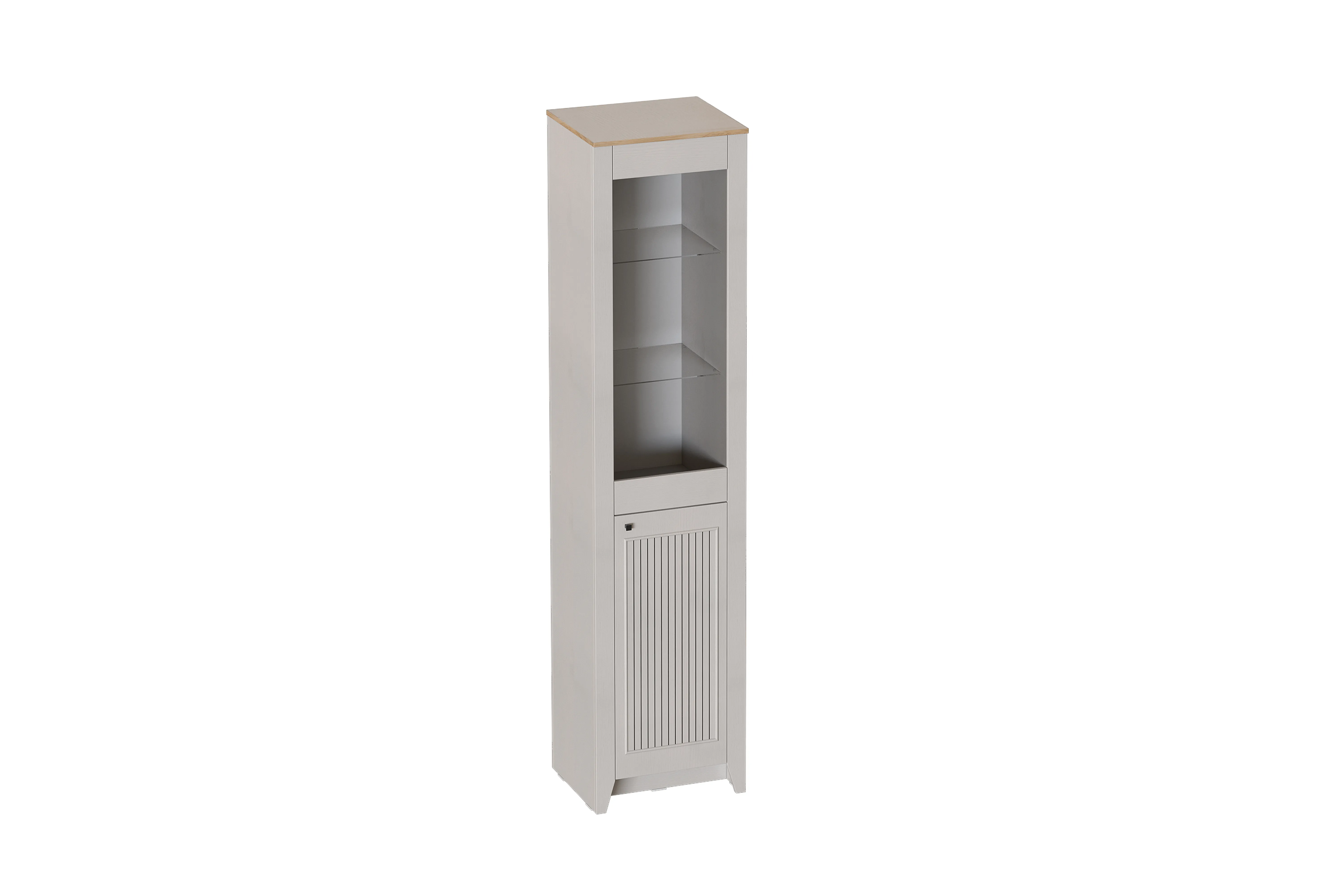Шкаф-витрина однодверный "Валенсия" выполнен в комбинации Дуб натуральный светлый / Персидский жемчуг. Внутреннее пространство шкафа представляет собой два отделения. Нижнее пространство включает в себя съемные полки. Верхнее отделение со стеклянными полками. Петли без амортизаторов. Шкаф выполнен из безопасных, качественных материалов, что гарантирует долговечность и сохранение первоначального вида на протяжении долгого времени.