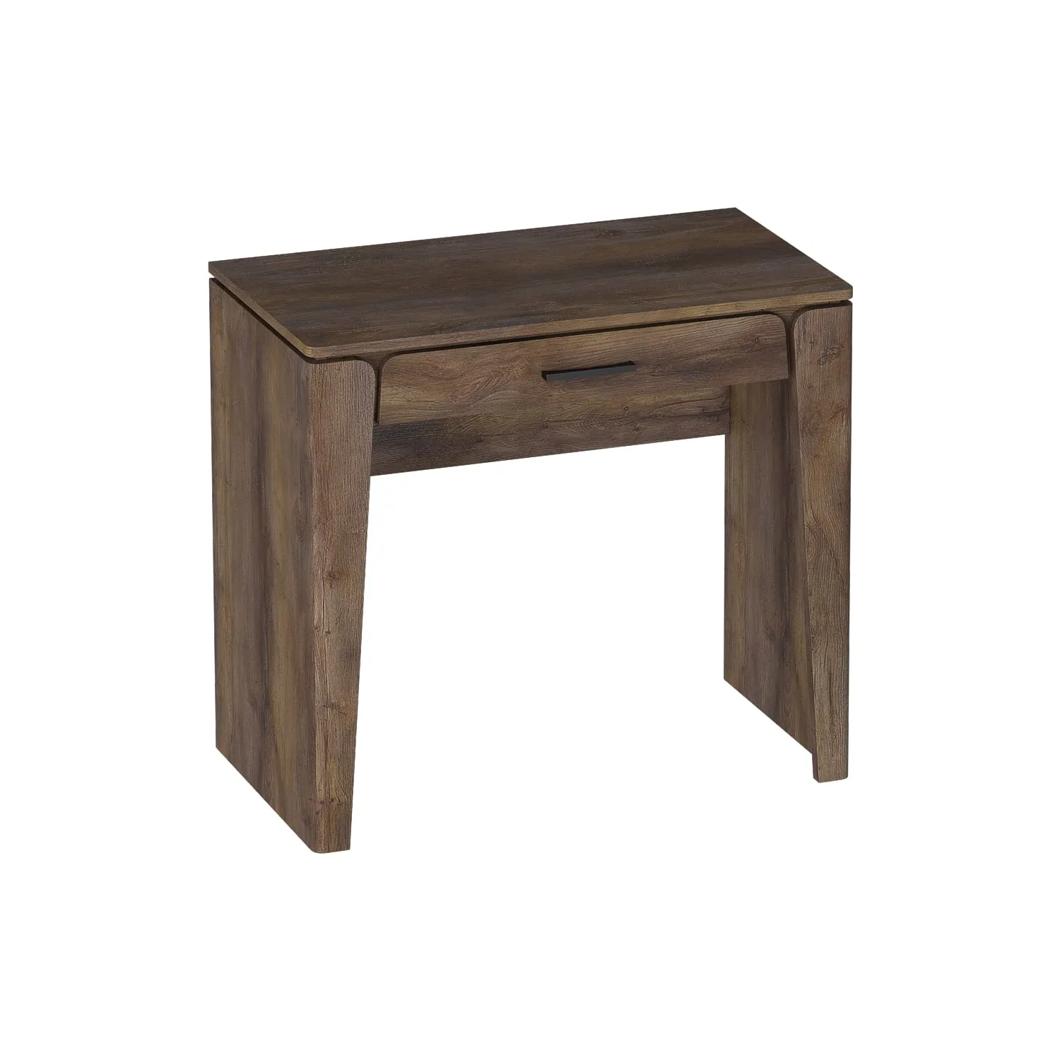 Корпус изготовлен из ЛДСП, а фасад украшен округлыми стильными элементами, выполненными из МДФ. Выдвижной ящик обеспечит дополнительное место для хранения.